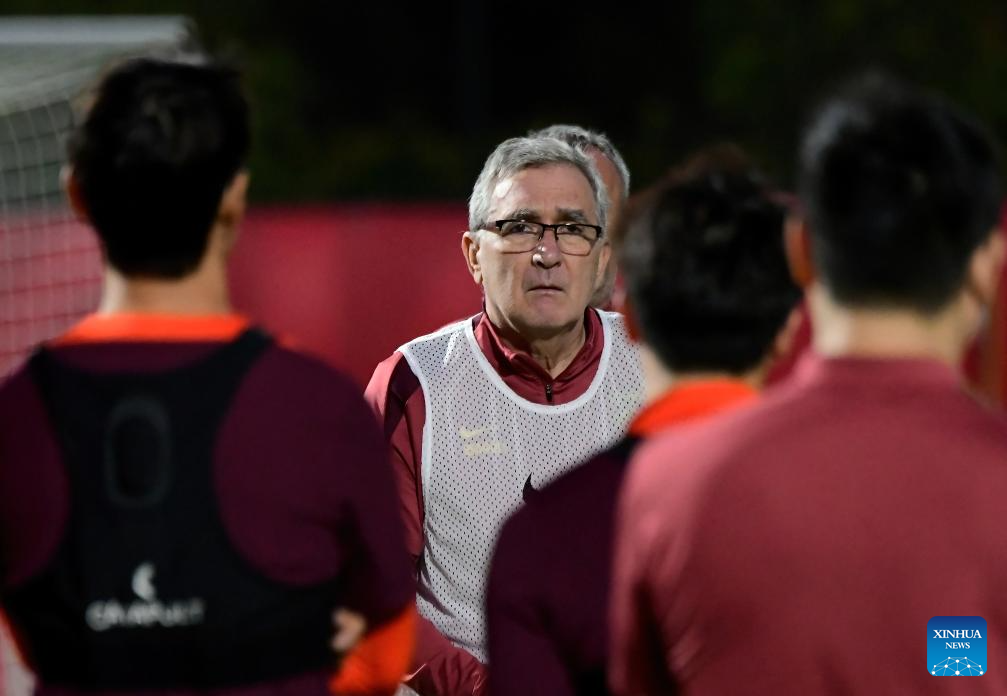 Branko Ivakovic, head coach of the Chinese national men's football team, is seen during a training session for the upcoming 2026 FIFA World Cup Asian Qualifiers match between China and Japan in Xiamen, east China's Fujian Province, Nov. 17, 2024. (Xinhua/Wei Peiquan)