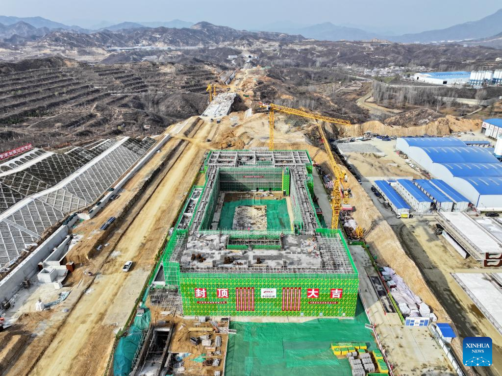 Main structure of Fuping Railway Station capped in Hebei, N China