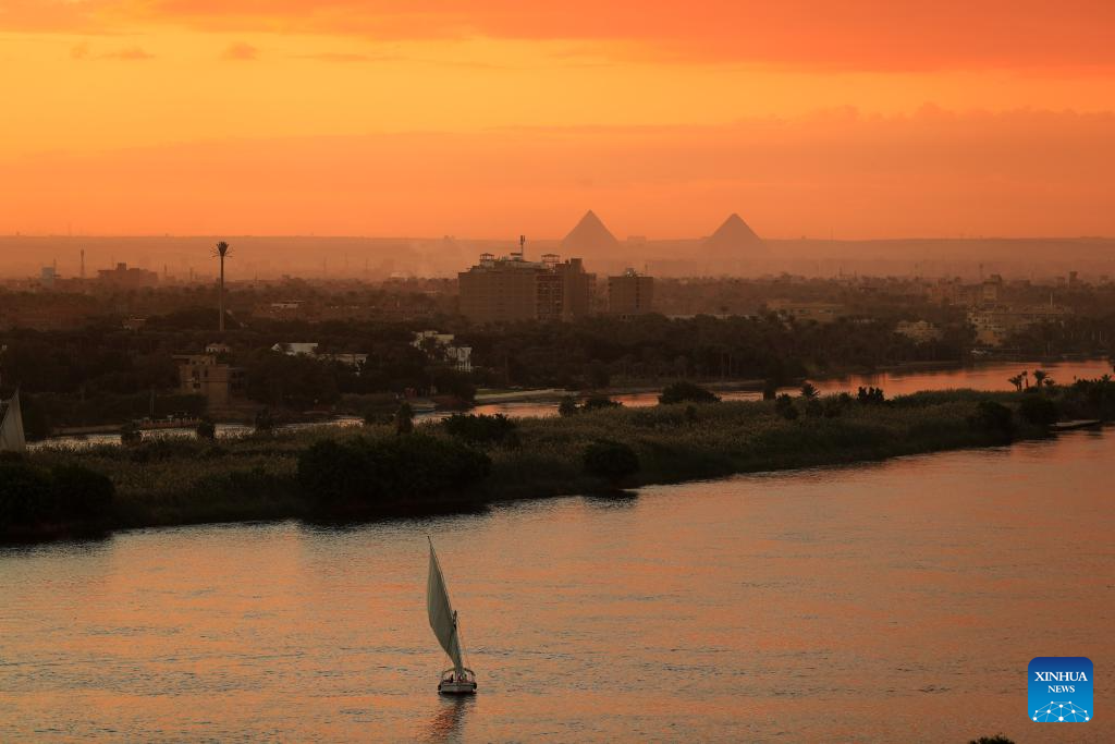 Boats sail on the Nile River at sunset in Cairo, Egypt, on Nov. 18, 2024. (Xinhua/Sui Xiankai)