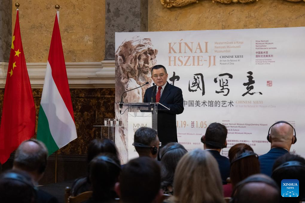 BUDAPEST, Nov. 19 (Xinhua) -- The Hungarian National Museum in Budapest inaugurated on Tuesday the exhibition "Chinese Xieyi - Art from the National Art Museum of China," as part of the celebration of the 75th anniversary of diplomatic relations between Hungary and China.