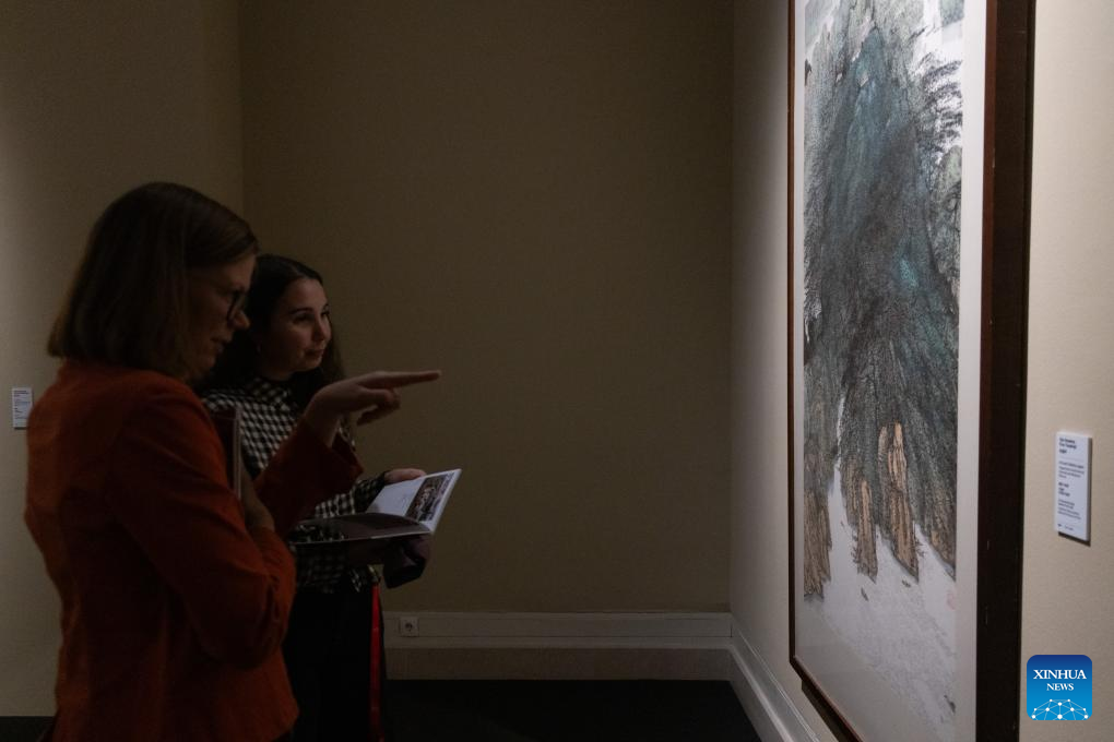 A visitor views an artwork at the exhibition "Chinese Xieyi - Art from the National Art Museum of China" in Budapest, Hungary, on Nov. 19, 2024. The Hungarian National Museum in Budapest inaugurated on Tuesday the exhibition "Chinese Xieyi - Art from the National Art Museum of China," as part of the celebration of the 75th anniversary of diplomatic relations between Hungary and China. (Photo by Attila Volgyi/Xinhua)