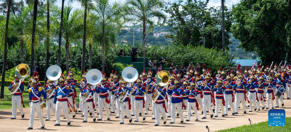 Brazilian President Luiz Inacio Lula da Silva and his wife Rosangela da Silva warmly welcome Chinese President Xi Jinping and hold a grand welcome ceremony for Xi, prior to the talks between Xi and Lula, in Brasilia, Brazil, Nov. 20, 2024. Xi on Wednesday held talks with Lula in Brasilia. (Xinhua/Ding Lin)