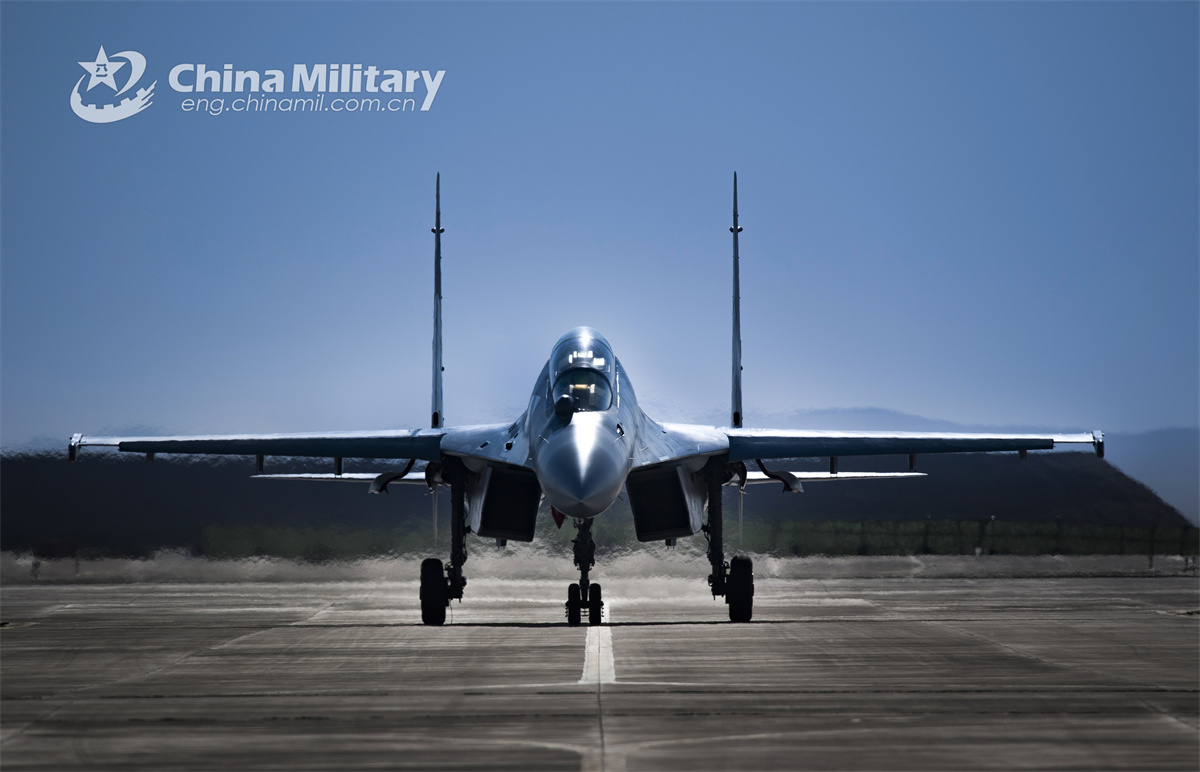 A J-16 multi-role fighter jet attached to an aviation regiment under the Chinese PLA Air Force soars into the air during a round-the-clock flight training exercise on October 10th, 2024. (eng.chinamil.com.cn/Photo by Xu Chengcheng)
