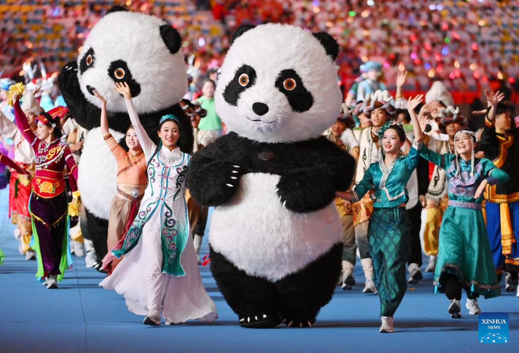 Artists perform during the opening ceremony of the 12th National Traditional Games of Ethnic Minorities of the People's Republic of China in Sanya, south China's Hainan Province, Nov. 22, 2024. (Xinhua/Jigme Dorji)