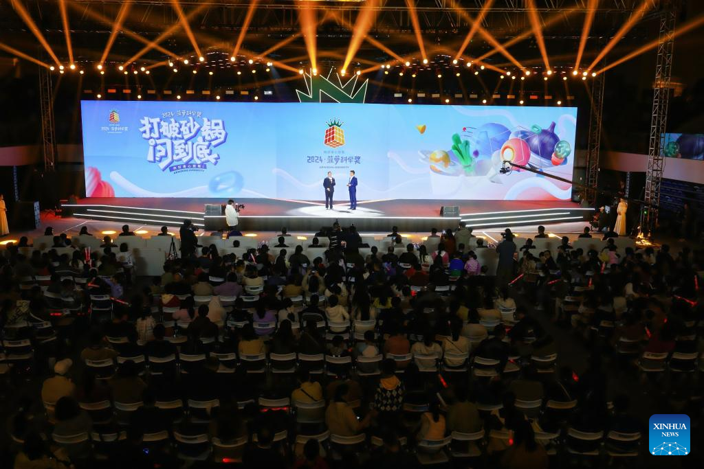 Young audiences conduct scientific experiments at the annual Pineapple Science Award in Hangzhou, the capital of east China's Zhejiang Province, Nov. 23, 2024. (Xinhua)