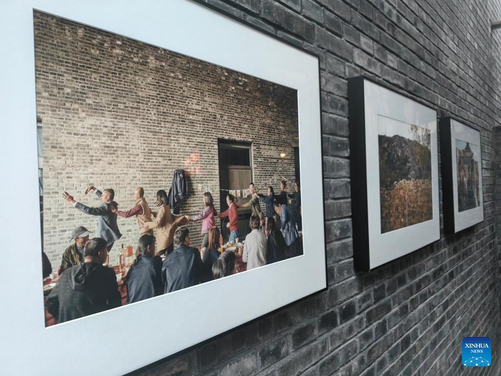 This photo taken on Sept. 19, 2024 shows photos hanging in the Domaine de Long Dai winery's hall in Penglai District of Yantai, east China's Shandong Province. (Xinhua/Shao Kun)