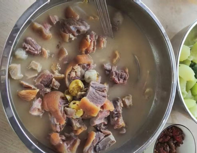 Another local favorite is wild sour jujube with cured pork trotters. To cut the richness of the pork, Zhenyuan locals add foraged mountain sour jujubes, slow-cooking the trotters until the flavors meld into a delightful blend of sour, sweet, and savory.