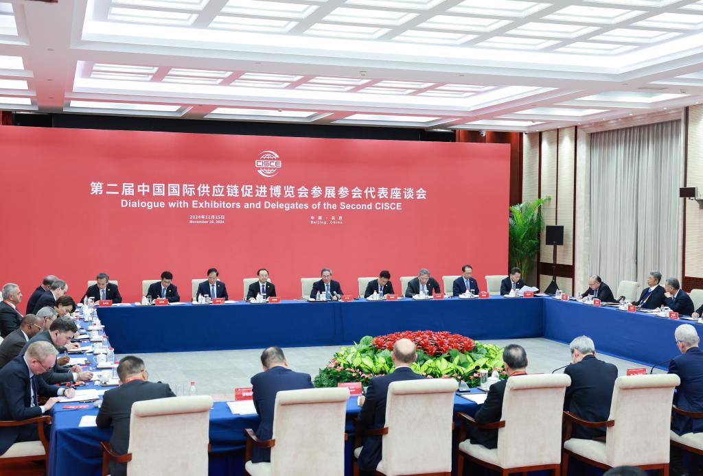 Chinese Premier Li Qiang attends a symposium with representatives of enterprises and organizations participating in the second China International Supply Chain Expo (CISCE), in Beijing, capital of China, Nov. 25, 2024. (Xinhua/Wang Ye)