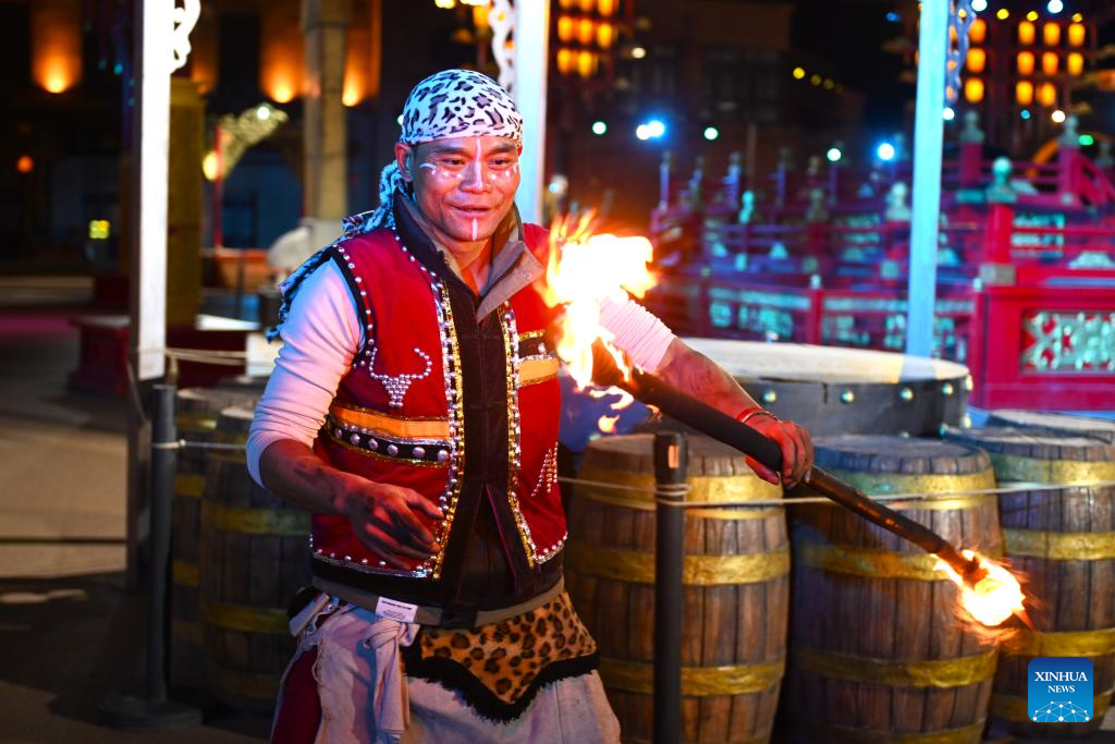 A performer stages a show at an immersive performing arts town in Xixia District of Yinchuan, northwest China's Ningxia Hui Autonomous Region, Nov. 25, 2024.