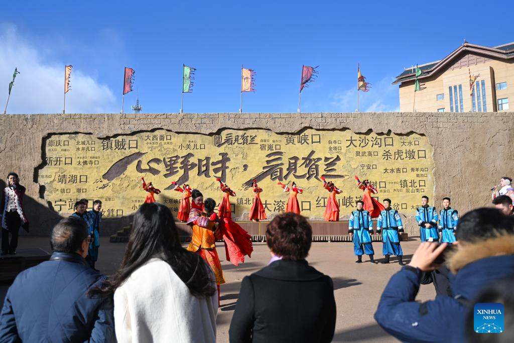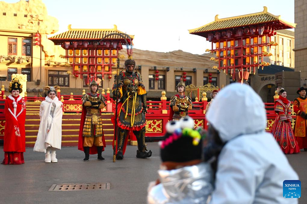 A performance is staged to welcome tourists at an immersive performing arts town in Xixia District of Yinchuan, northwest China's Ningxia Hui Autonomous Region, Nov. 25, 2024.