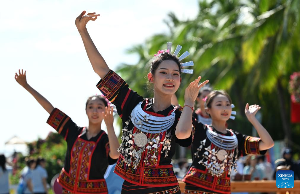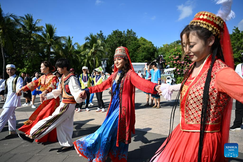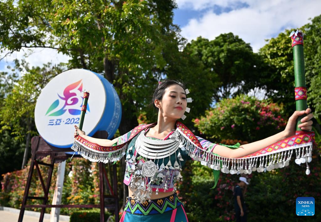 Artists perform during a performance gala of the 12th National Traditional Games of Ethnic Minorities of China in Sanya, south China's Hainan Province, Nov. 26, 2024. (Xinhua/Zhang Bowen)