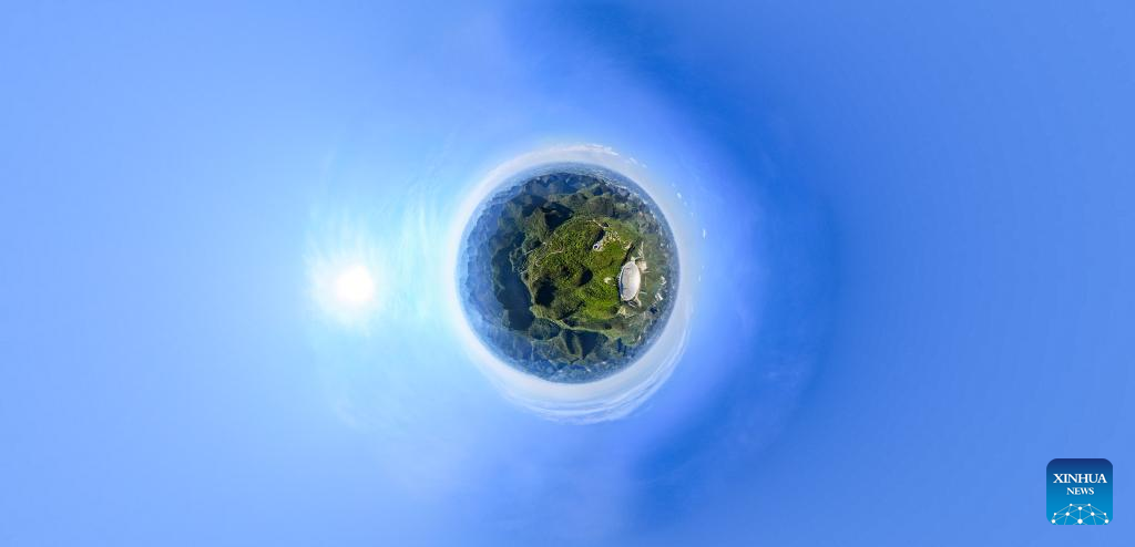 A panoramic drone photo taken on Sept. 25, 2024 shows China's Five-hundred-meter Aperture Spherical Radio Telescope (FAST) under maintenance in southwest China's Guizhou Province. (Xinhua/Ou Dongqu)
