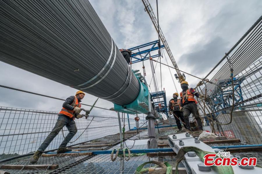 The 2,890-meter-long Huajiang grand canyon bridge is set to be the highest in the world after it is completed in 2025.