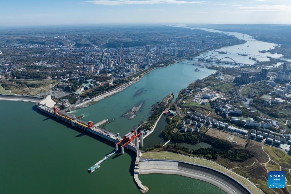 An aerial drone photo taken on Nov. 30, 2024 shows a view of the Danjiangkou Dam in central China's Hubei Province. (Xinhua/Hu Jingwen)