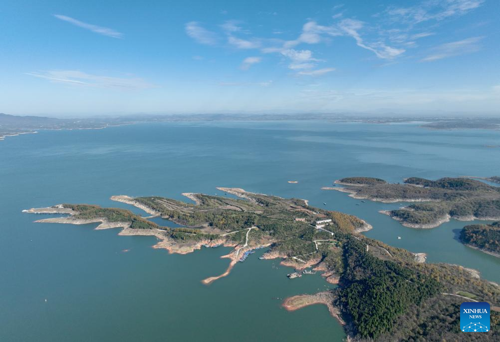 An aerial drone photo taken on Nov. 29, 2024 shows a view of the Danjiangkou Reservoir in central China's Hubei Province. (Xinhua/Wang Yuguo)