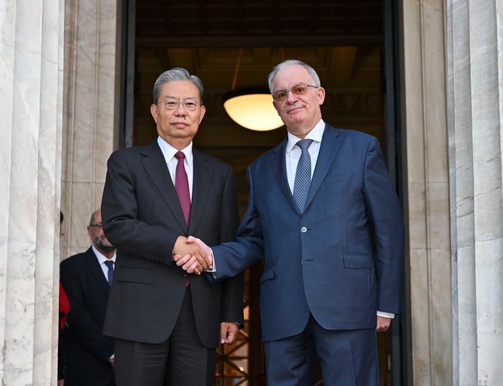 Zhao, chairman of the Standing Committee of the National People's Congress (NPC), met in Athens with Greek President Katerina Sakellaropoulou and Greek Prime Minister Kyriakos Mitsotakis respectively, and held talks with Constantine Tassoulas, president of the Greek parliament.
