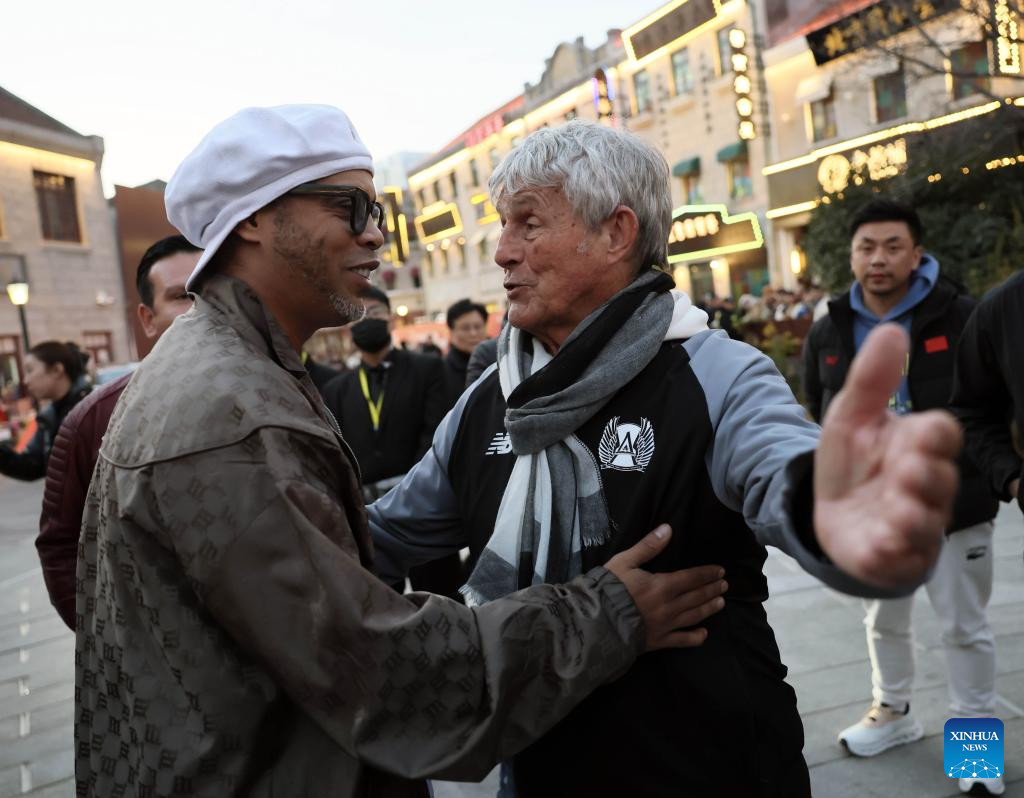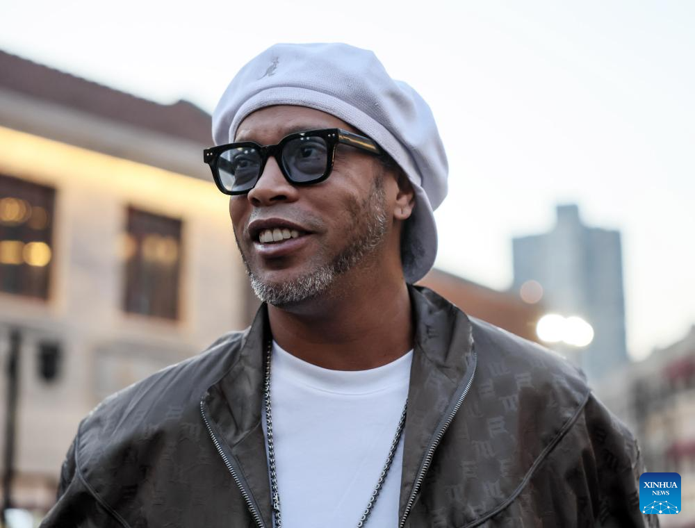 Former Brazilian national team football player Ronaldinho is seen during a football charity event in Qingdao, east China's Shandong Province, Nov. 30, 2024. (Photo by Lan Hongguang/Xinhua)