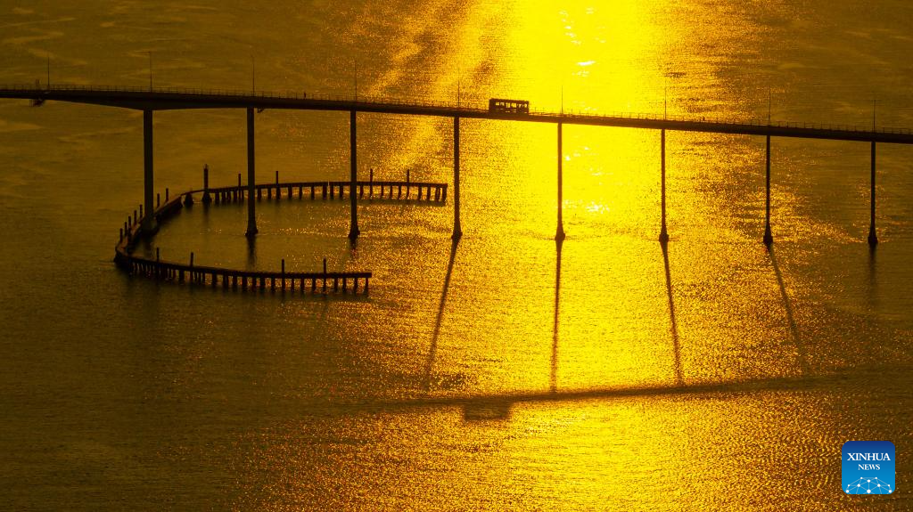 Vehicles run on the Governador Nobre de Carvalho Bridge in south China's Macao, Dec. 2, 2024. This year marks the 25th anniversary of Macao's return to the motherland. After 25 years of development, Macao has become a world renowned tourism destination, where Eastern and Western cultures have co-existed for over 400 years. (Xinhua/Cheong Kam Ka)