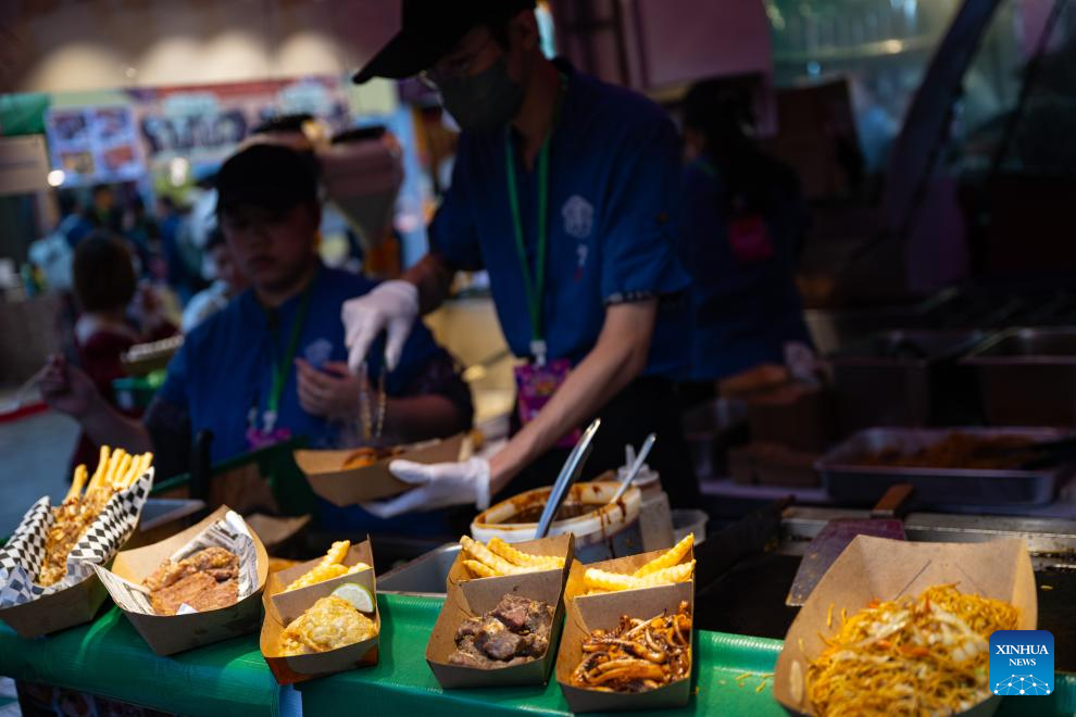 Food is pictured at the 24th Macao Food Festival in south China's Macao, Nov. 24, 2024. This year marks the 25th anniversary of Macao's return to the motherland. After 25 years of development, Macao has become a world renowned tourism destination, where Eastern and Western cultures have co-existed for over 400 years. (Xinhua/Cheong Kam Ka)