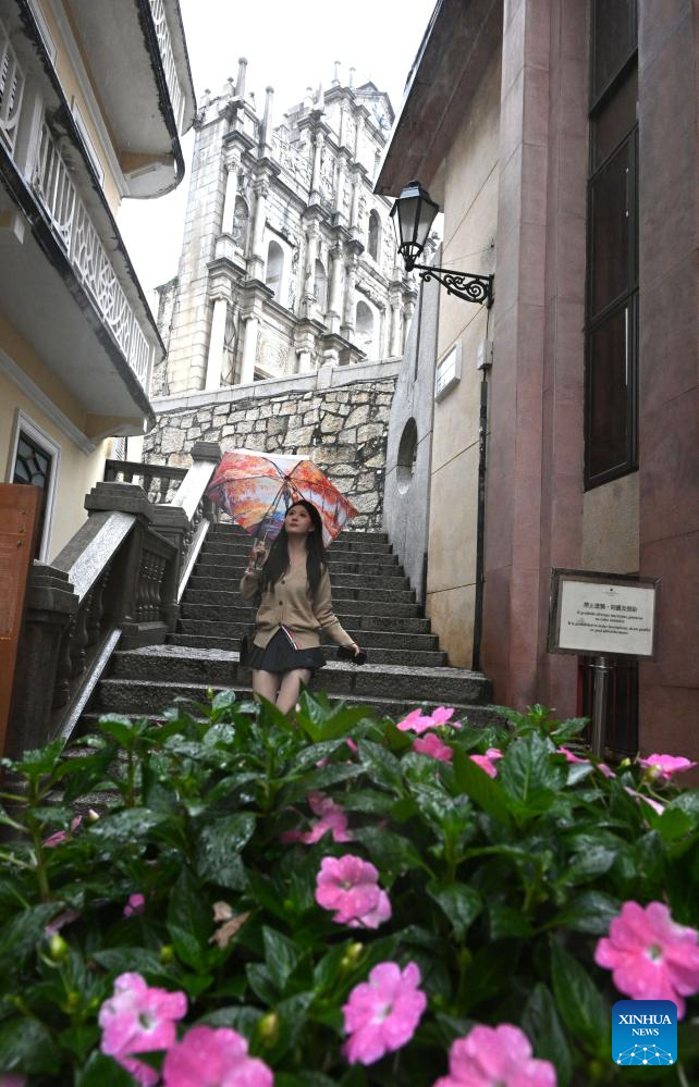 Tourists visit the Ruins of St. Paul's in south China's Macao, Nov. 18, 2024. This year marks the 25th anniversary of Macao's return to the motherland. After 25 years of development, Macao has become a world renowned tourism destination, where Eastern and Western cultures have co-existed for over 400 years. (Xinhua/Wang Yiliang)