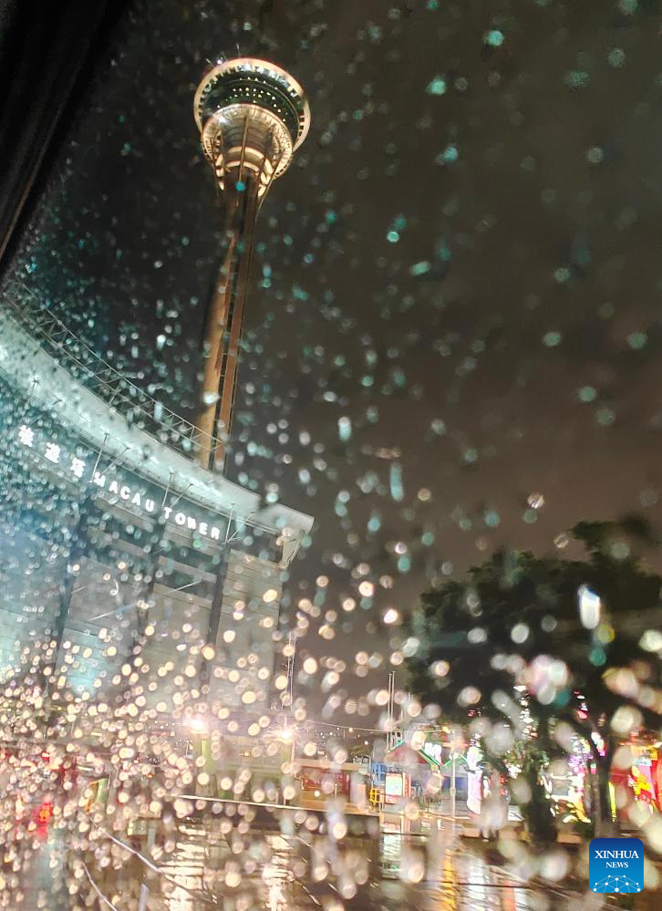 This photo taken with a mobile phone shows the Macao Tower in south China's Macao, Nov. 19, 2024. This year marks the 25th anniversary of Macao's return to the motherland. After 25 years of development, Macao has become a world renowned tourism destination, where Eastern and Western cultures have co-existed for over 400 years. (Xinhua/Jin Liangkuai)