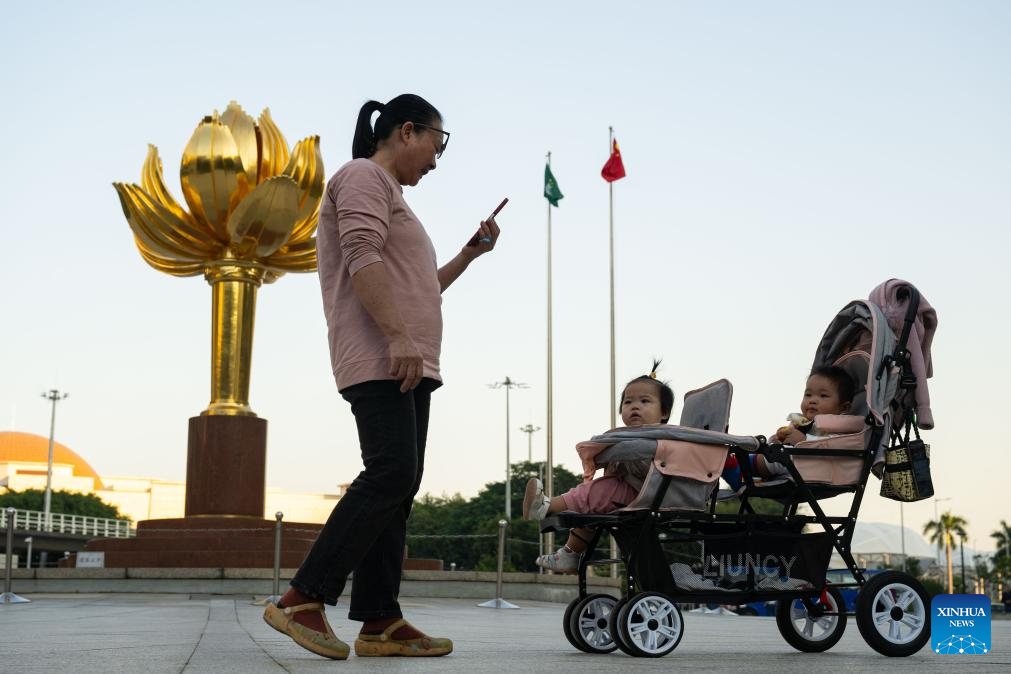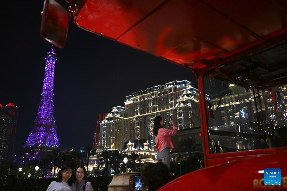 People visit the Golden Lotus Square in south China's Macao, Dec. 2, 2024. This year marks the 25th anniversary of Macao's return to the motherland. After 25 years of development, Macao has become a world renowned tourism destination, where Eastern and Western cultures have co-existed for over 400 years. (Xinhua/Cheong Kam Ka)