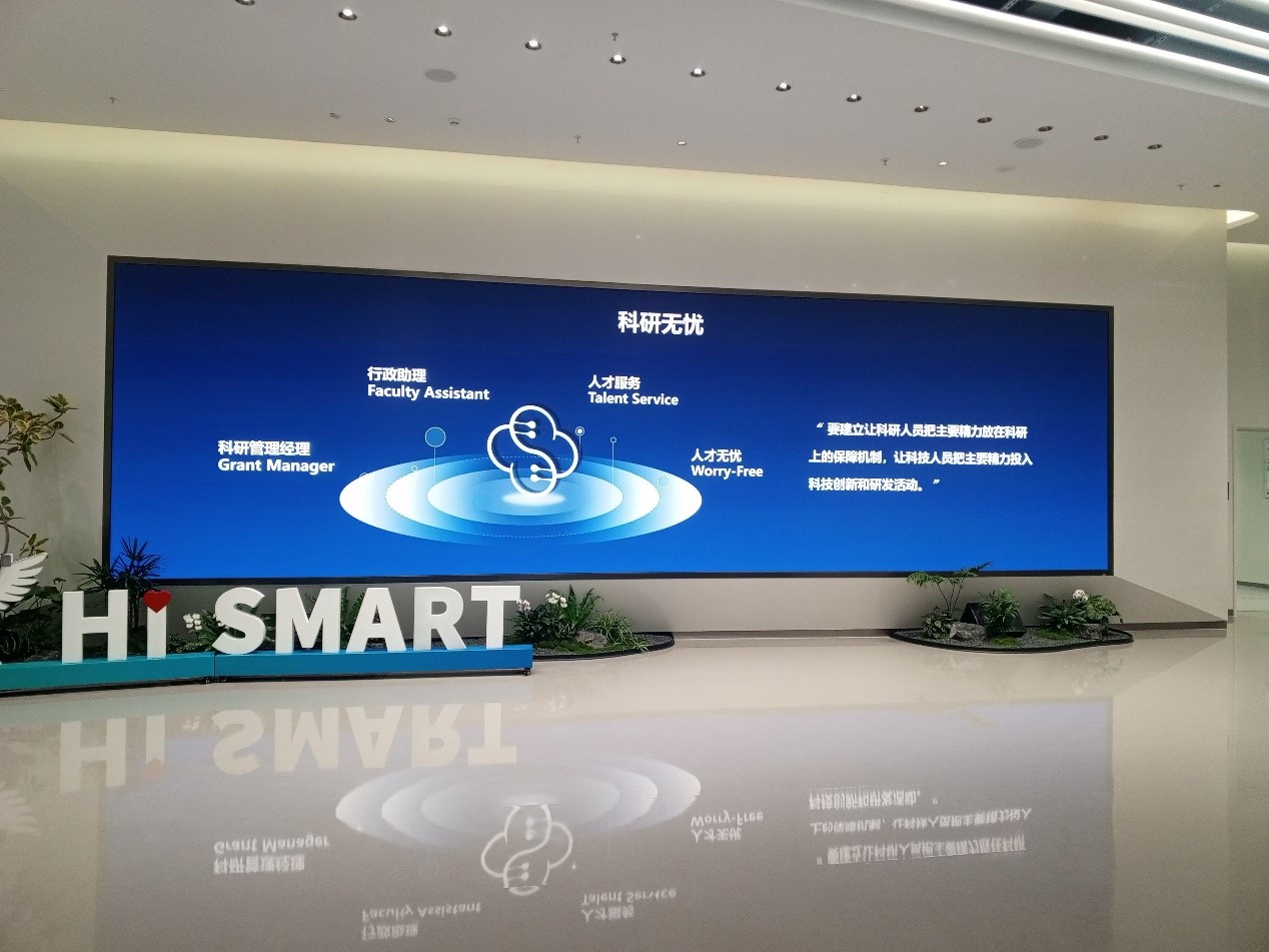 The screen at the entrance of the main building of SMART depicts the institution's research plan, Guangming district, Shenzhen, south China's Guangdong Province, Nov. 29, 2024. (Photo/People's Daily Online)