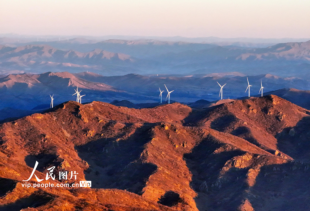 In early winter, Meilin Valley, located in Harqin Banner, Chifeng city, north China's Inner Mongolia Autonomous Region, is enveloped in mist, with winding snow paths, swaying wind turbines, and rolling mountains. Bathed in the warm glow of the morning sun, the landscape unfolds into a beautiful, picturesque winter scene.