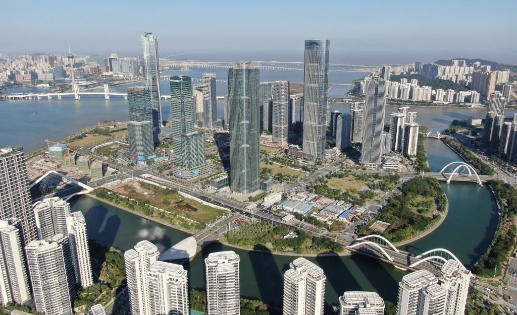 An aerial drone photo taken on Nov. 26, 2024 shows a view of Guangdong-Macao in-depth cooperation zone in Hengqin, Zhuhai City, south China's Guangdong Province. In 2021, the Chinese central authorities decided to build the Guangdong-Macao in-depth cooperation zone in Hengqin, Zhuhai City, making the island an important new growth point for Macao's economy.