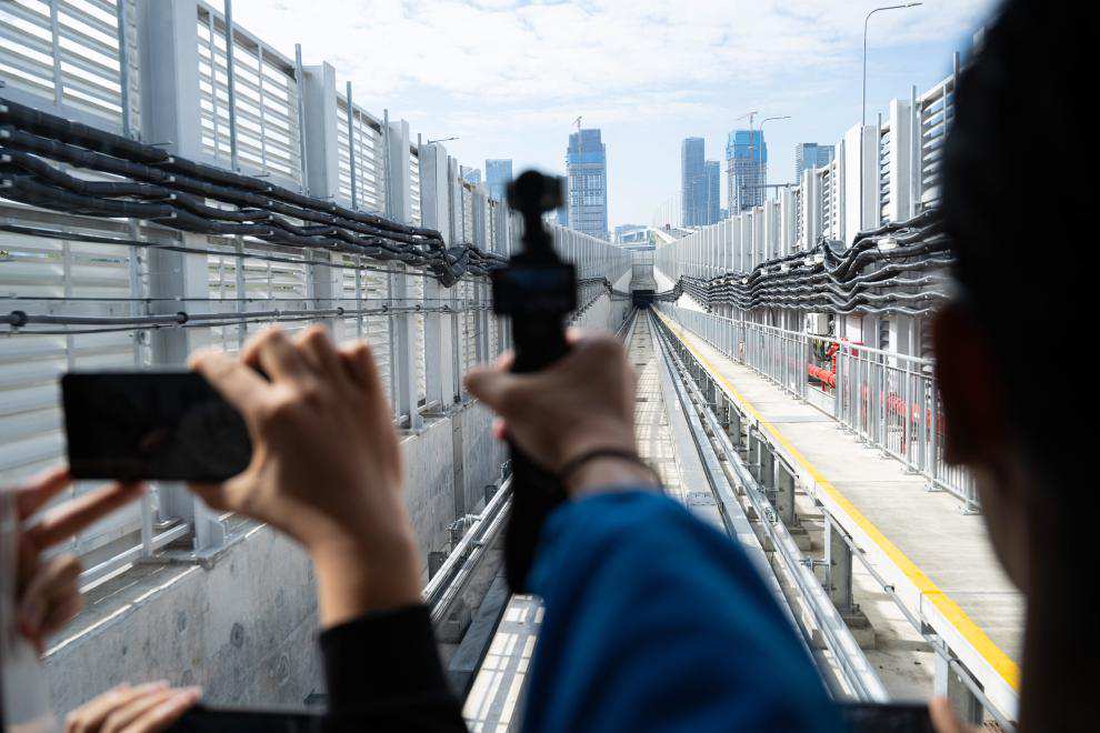 Passengers take the train of Macao Light Rail to Hengqin on Dec. 2, 2024. In 2021, the Chinese central authorities decided to build the Guangdong-Macao in-depth cooperation zone in Hengqin, Zhuhai City, making the island an important new growth point for Macao's economy.