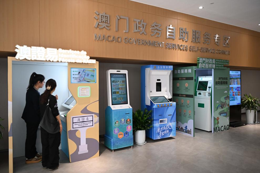 A staff member introduces Macao government self-service facilities at the government service center in Guangdong-Macao in-depth cooperation zone in Hengqin, Zhuhai City, south China's Guangdong Province, Nov. 26, 2024. In 2021, the Chinese central authorities decided to build the Guangdong-Macao in-depth cooperation zone in Hengqin, Zhuhai City, making the island an important new growth point for Macao's economy.