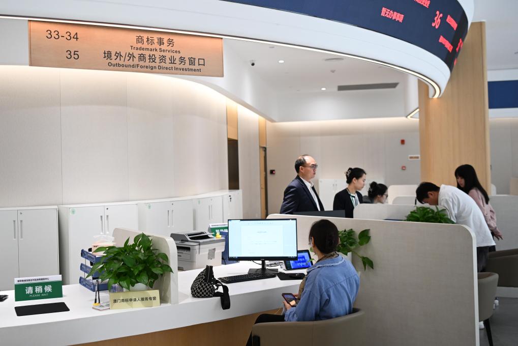 Staff members handle business at the government service center in Guangdong-Macao in-depth cooperation zone in Hengqin, Zhuhai City, south China's Guangdong Province, Nov. 26, 2024. In 2021, the Chinese central authorities decided to build the Guangdong-Macao in-depth cooperation zone in Hengqin, Zhuhai City, making the island an important new growth point for Macao's economy.