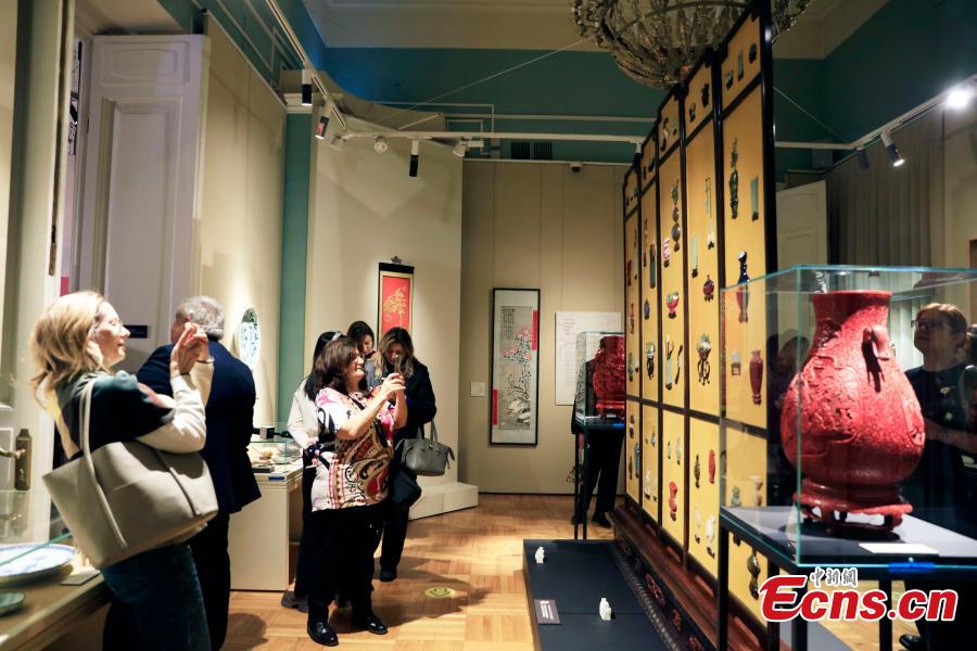 People view exhibits during a special exhibition to commemorate the 75th anniversary of the establishment of diplomatic ties between China and Russia at the State Museum of Oriental Art in Moscow, Russia, Dec. 4, 2024. (China News Service/Tian Bin)
