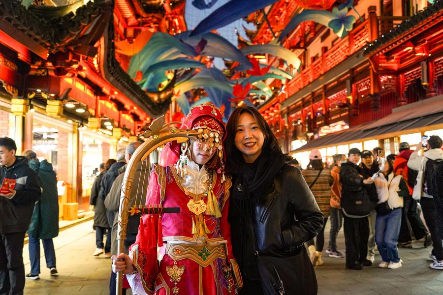 Tourists from South Korea visit the Yuyuan Garden Mall in east China's Shanghai, Dec. 4, 2024. (Photo by Chen Haoming/Xinhua)