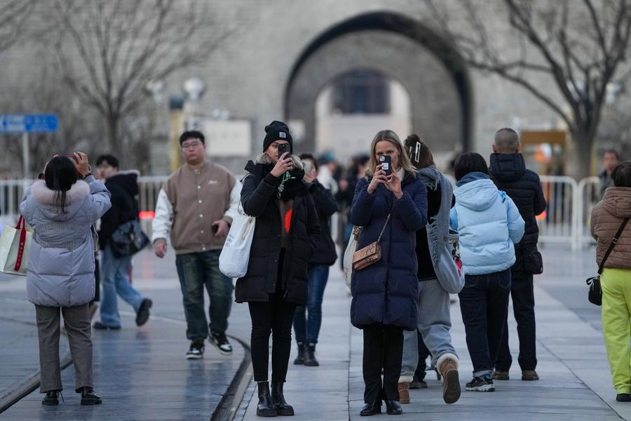 Foreign tourists visit Qianmen street in Beijing, capital of China, Dec. 5, 2024. (Xinhua/Zhang Chenlin)