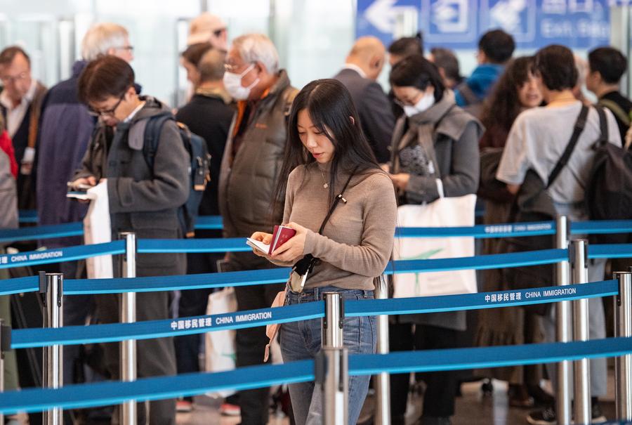 A tourist from Japan (front) waits for entry inspection at Beijing Capital International Airport in Beijing, capital of China, Dec. 4, 2024. (Xinhua/Chen Zhonghao)