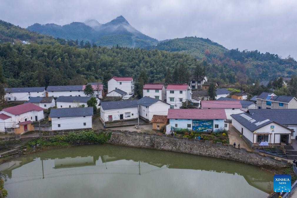 This photo taken on Dec. 6, 2024 shows a view of the Changling Village of Jiande City in east China's Zhejiang Province. An art exhibition, presenting more than 50 rural-themed watercolor paintings, opened in Changling Village on Friday.