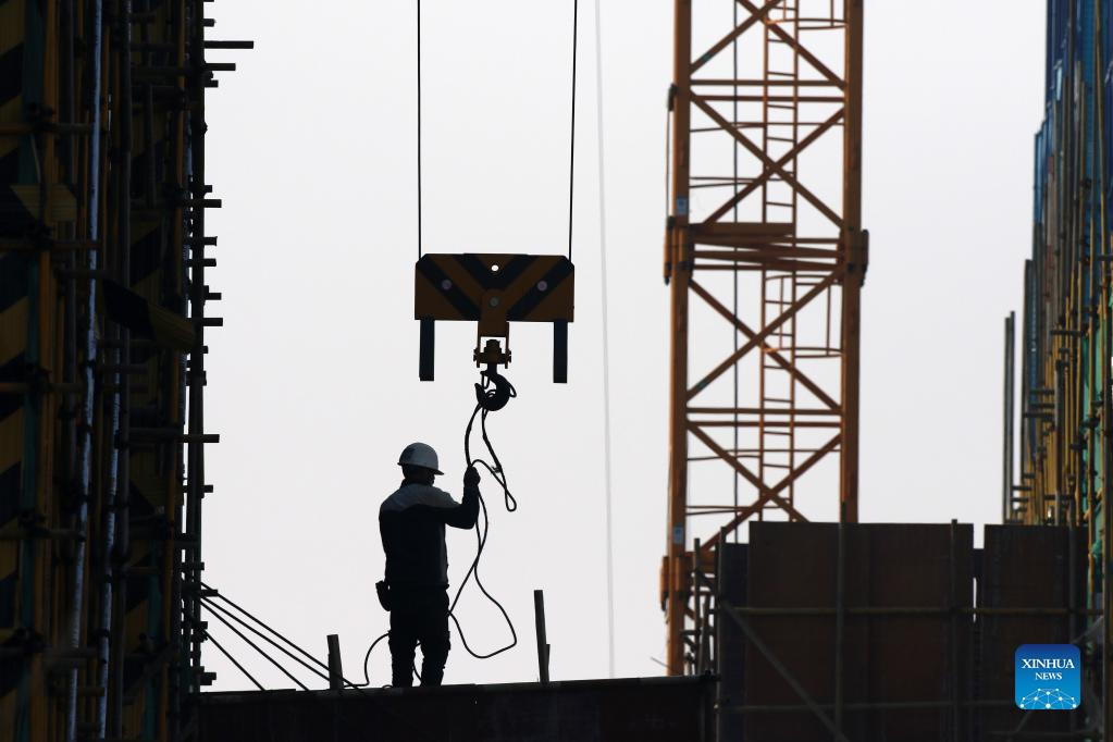A worker is seen at a construction site in Huai'an, east China's Jiangsu Province, Jan. 3, 2022. (Xinhua/He Jinghua)