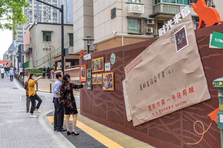 This photo taken on April 28, 2023 shows people taking photos of a urban renewal project in Jiulongpo District in southwest China's Chongqing. (Xinhua/Huang Wei)