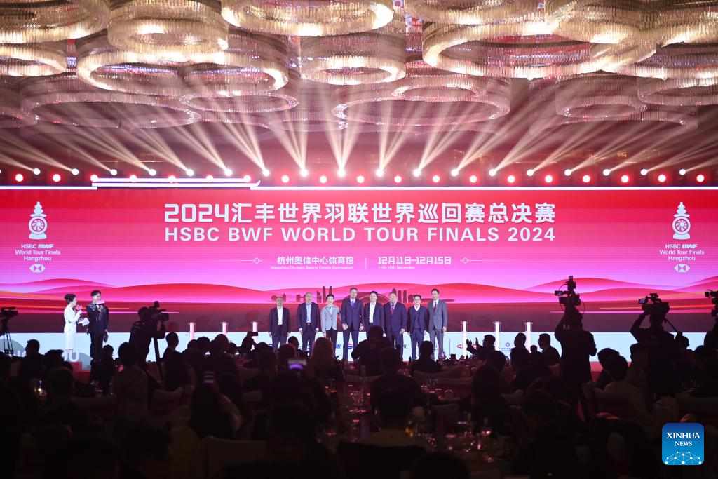 This photo taken on Dec. 9 shows the opening ceremony of BWF World Tour finals during the BWF World Tour welcome banquet in Hangzhou, east China's Zhejiang Province, Dec. 9, 2024. (Xinhua/Huang Zongzhi)