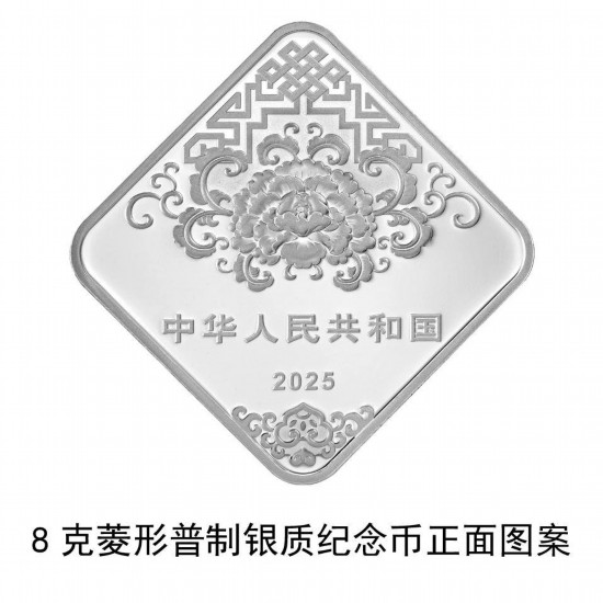 Photo shows the reverse side of the 8-gram rhombic silver coin. (Photo/PBOC)