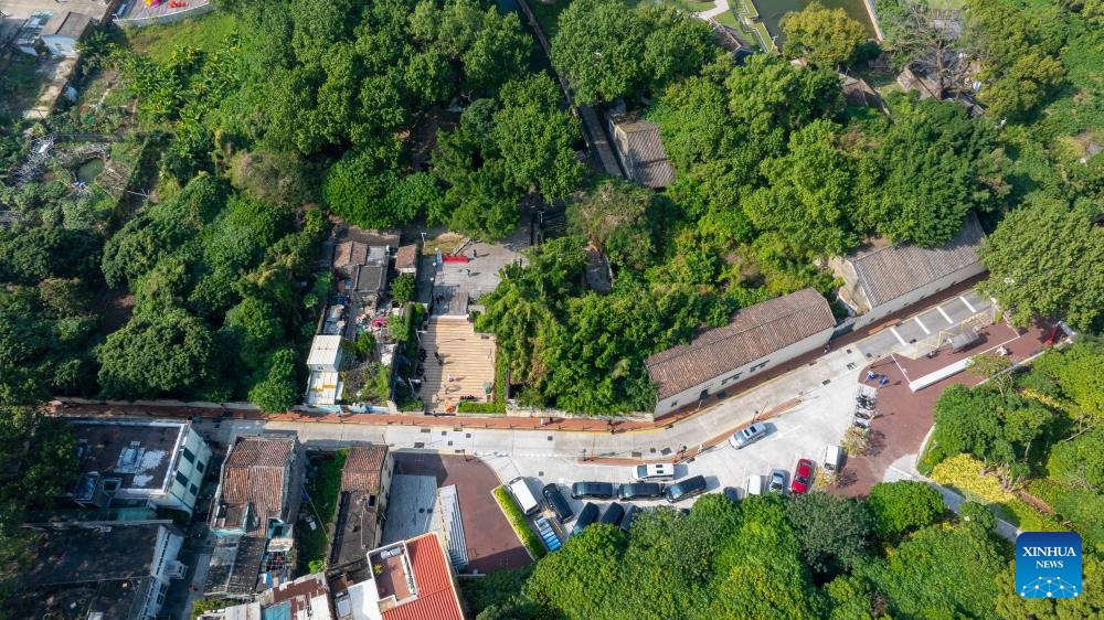 This aerial drone photo taken on Dec. 7, 2024 shows a view of revitalized Former Iec Long Firecracker Factory in south China's Macao Special Administrative Region (SAR). The Macao SAR government has been committed to revitalizing and utilizing the historic areas in the region. An increasing number of locals and tourists visit these areas today to feel the charm of integration between traditional and modern cultures. (Xinhua/Cheong Kam Ka)