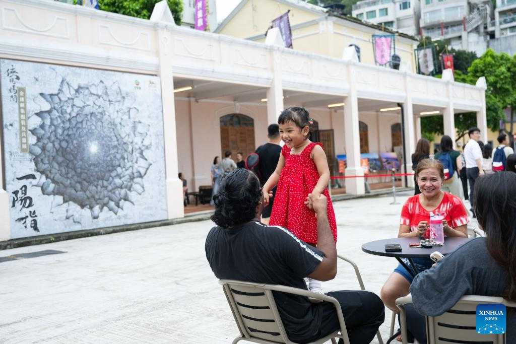 People enjoy themselves at the revitalized Barra District in south China's Macao Special Administrative Region (SAR) on June 16, 2024. The Macao SAR government has been committed to revitalizing and utilizing the historic areas in the region. An increasing number of locals and tourists visit these areas today to feel the charm of integration between traditional and modern cultures. (Xinhua/Cheong Kam Ka)