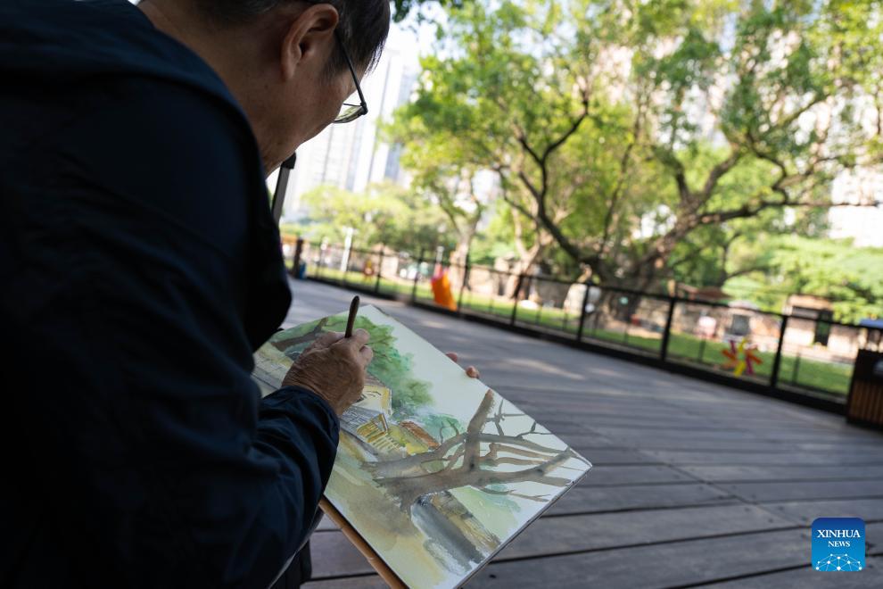 A person paints from life at the revitalized Former Iec Long Firecracker Factory in south China's Macao Special Administrative Region (SAR), Dec. 7, 2024. The Macao SAR government has been committed to revitalizing and utilizing the historic areas in the region. An increasing number of locals and tourists visit these areas today to feel the charm of integration between traditional and modern cultures. (Xinhua/Cheong Kam Ka)
