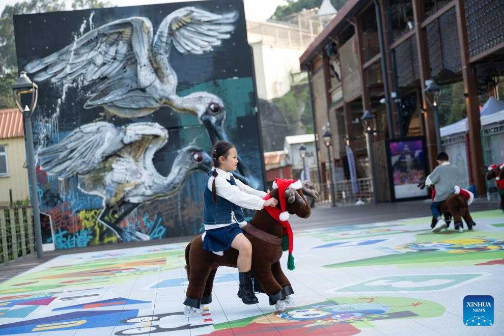 Children play at the revitalized Lai Chi Vun Shipyards in south China's Macao Special Administrative Region (SAR), Dec. 7, 2024. The Macao SAR government has been committed to revitalizing and utilizing the historic areas in the region. An increasing number of locals and tourists visit these areas today to feel the charm of integration between traditional and modern cultures. (Xinhua/Cheong Kam Ka)