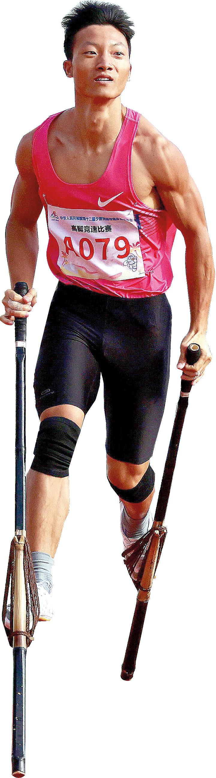 An athlete competes in a stilt race during the event on Nov 25. (Wei Xiaohao/China Daily)