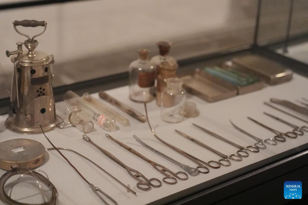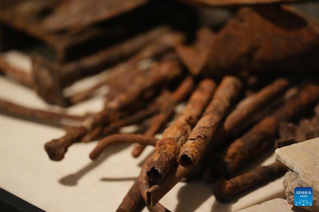 This photo taken on Dec. 12, 2024 shows exhibits on display at the former site of Unit 731 in Harbin, northeast China's Heilongjiang Province. The former site of the notorious Japanese germ warfare army, known as Unit 731, reopened to public on Friday with a special exhibition on cultural relics and historical materials of Japan's germ-warfare crimes in China.