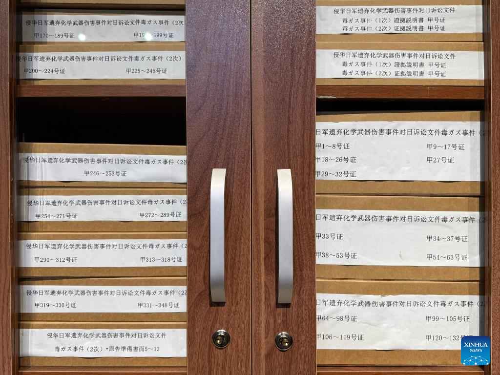 Archives are pictured at the former site of Unit 731 in Harbin, northeast China's Heilongjiang Province, Dec. 12, 2024. The former site of the notorious Japanese germ warfare army, known as Unit 731, reopened to public on Friday with a special exhibition on cultural relics and historical materials of Japan's germ-warfare crimes in China.