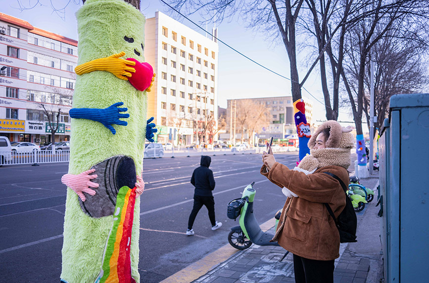 Recently, some trees around Kaide Square in Yuquan district, Hohhot city, north China's Inner Mongolia Autonomous Region, have been dressed in vibrant "sweaters," adding a playful touch to the streets and bringing an artistic atmosphere to the city's winter landscape.