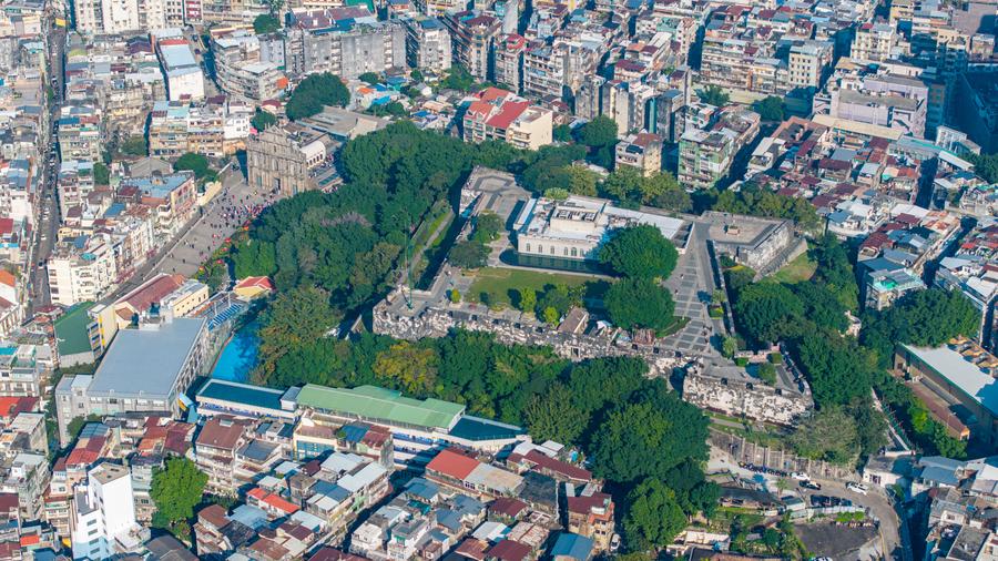 This aerial drone photo taken on Dec. 2, 2024 shows a view of the revitalized Mount Fortress in south China's Macao Special Administrative Region (SAR). (Xinhua/Cheong Kam Ka)